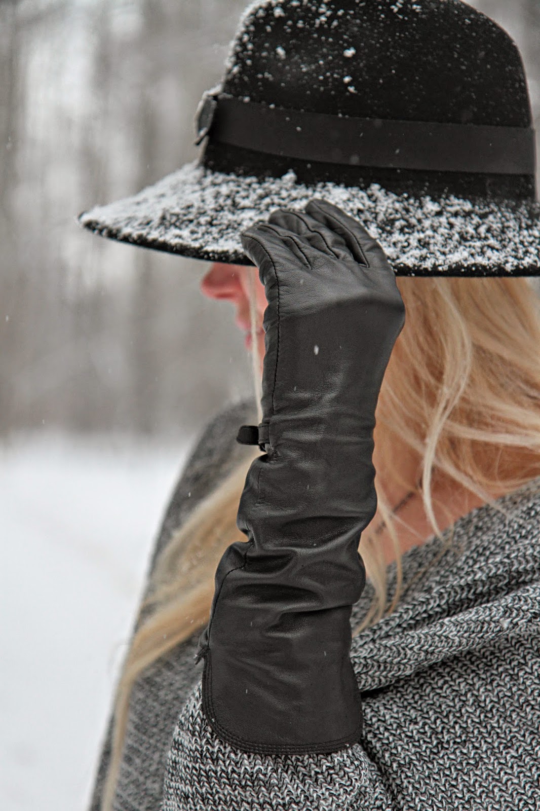 Для этой фотосессии я выбрала черные джинсы H&M, серый свитер в стиле оверсайз  с рукавом 3/4 от Choies. Я очень люблю такие бесформенные свитера в прохладную погоду, они очень уютные и удобные, сочетаются хорошо как с джинсами так и с узкими юбками, и еще выигрышно подчеркнут ноги если вы в брюках. Удлиненный сзади, этот свитер прекрасно смотрится с обувью на каблуке и со шляпой-федорой. Кстати, у меня вечная проблема с размерами шляп, они мне всегда велики, эта как раз по размеру, поля у шляпы не огромные и этим она очень удобна. К сожалению, шляпа не моя, но я обязательно закажу себе такую же. Образ я дополнила своей кожаной сумкой на цепочке и очками, а сверху надела кожаную зимнюю курткой Replay, зимняя потому, что на синтепоновой подкладке, и если Вы на машине, то вполне можете носить такую куртку хоть всю зиму, а если нет, то все же лучше надевать что-то более теплое и длинное. Кстати, я эту куртку иногда и под парку ношу.